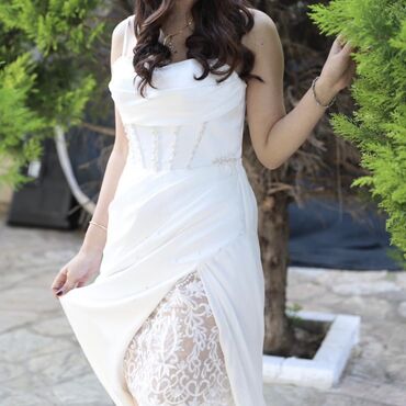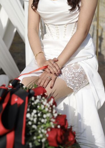 Ölçü və ölçülərə dair vizual bələdçi üçün şəkillərə baxın. Don zərif, müasir və klassik elementləri birləşdirən minimalistik gəlinlik axtaranlar üçün idealdır. Peşəkar şəkildə yuyulub, Türkiyədə bir dəfə istifadə olunub. Vəziyyəti hələ də çox yaxşıdır və səliqəli şəkildə qorunub. Brukat ətək və geyim örtüyü pulsuz verilir