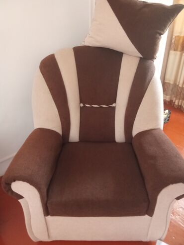 Qəhvəyi-krem rənglərdə yumşaq divan kreslo dəsti satılır qiymət 100 manat