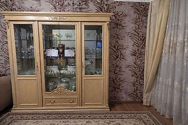 Klassik üslubda vitrin-bufet dəsti.100 manat - Material: ağac karkas, oyma dekorativ elementlər - Rəng: isti qoz tonları - Üst hissə: şüşəli vitrin bölməsi, 4 ədəd şüşə qapı; daxilində güzgülü arx...