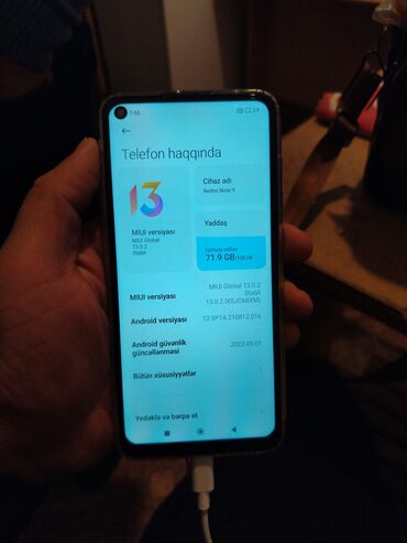 Redmi Note 9 Problemi yoxdu.Kabro,qoruyucu şüşə, adaptır və nauşniki var.
