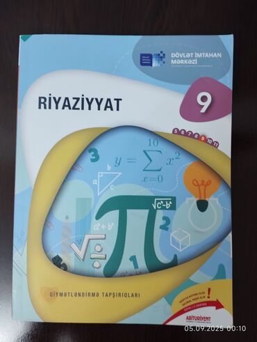 Məhsul: “Riyaziyyat – 9” qiymətləndirmə tapşırıqları kitabı Xüsusiyyətlər: - Nəşr: Dövlət İmtahan Mərkəzi (DİM), “Abituriyent” seriyası - Sinif: 9 - Bölmələr: 5–11 siniflərin pilləli göstəricisi ü...