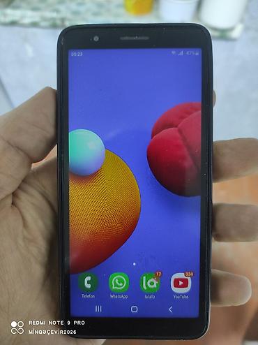 Sadə istifadə, zəng/WhatsApp/YouTube və gündəlik tətbiqlər üçün əlverişli. Model adı və əsas məlumatlar “Telefon haqqında” bölməsində göstərilib: Galaxy A01 Core, SM‑A013F/DS, Android 10, Dual SIM.