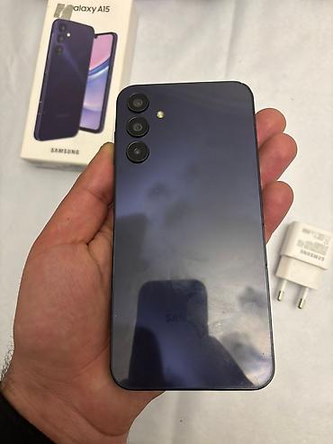 Samsung Galaxy A15 (SM-A155F/DSN) – Dual SIM Xüsusiyyətlər: - Ekran: 6.5" Super AMOLED, damla tipli ön kamera kəsiyi - Prosessor: səviyyəli gündəlik istifadə üçün səmərəli 8 nüvəli çip - Yaddaş: ç...