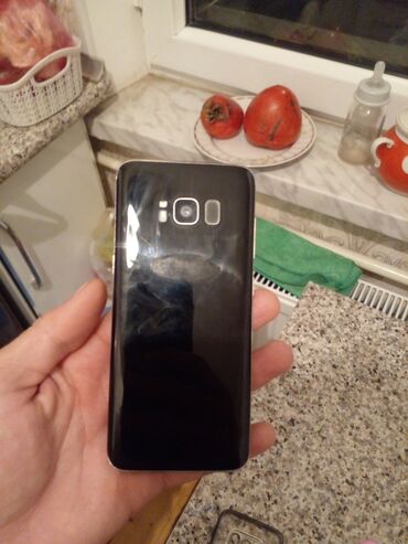 Samsung Galaxy S8 smartfonu. 64 GB yaddaş 4 GB RAM 3000 mAh batareyya. Barmaq izi (Fingerprint rear-mounted), üz tanıma, Accelerometer, Compass, Barometer, Heart Rate (ürək döyüntü ölçən), Samsung ...