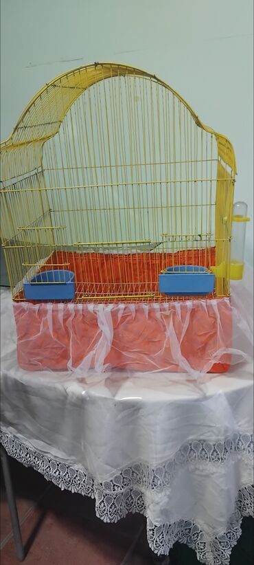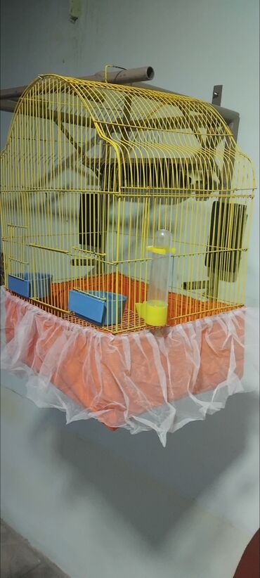Taxta və metal tor materiallarından hazırlanmış quş qəfəsi. Qəfəsin ön hissəsində quşların rahat girişi üçün nəzərdə tutulmuş bir qapı var. İçərisində iki ədəd taxta tir və qida qabı üçün iki bölmə...