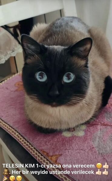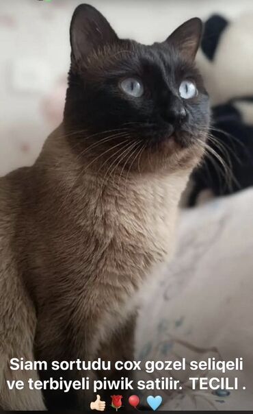 - Şəkildə qeyd: “Siam sortudu çox gözəl səliqəli və tərbiyəli pişik satılır. Təcili. Tələssin kim 1-ci yazsa ona verəcəm. Hər bir şeyi də üstündə veriləcək.”