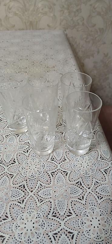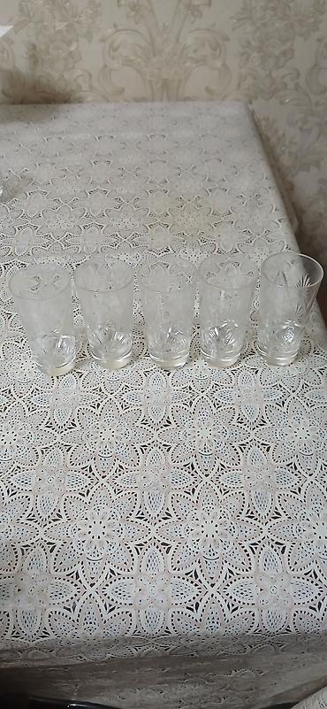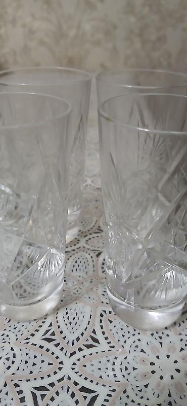 Xrustal stekanlar.sok veya cay.su.ve s. sumqayit. Kəsimli kristal stəkan dəsti - Komplekt: 6 ədəd - Material: qalın divarlı qurğuşunlu kristal şüşə - Dizayn: dərin əl kəsimi naxışlar (alma çiçəyi/...