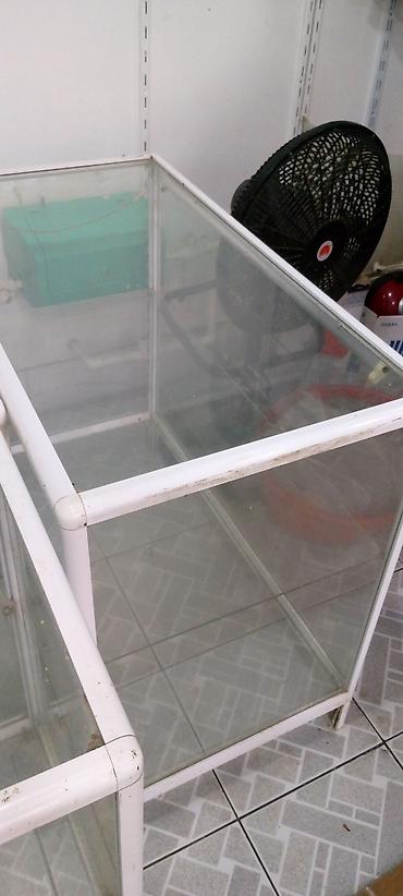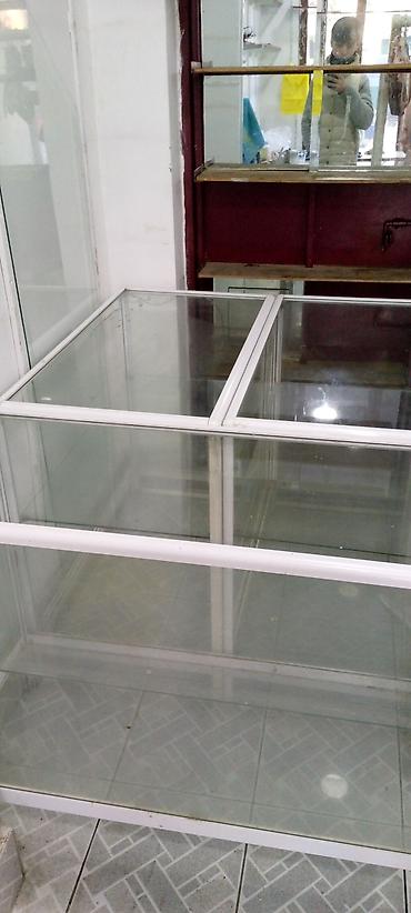 Şüşə vitrinin modulları – 2 bölməli, metal/plastik ağ çərçivəli -