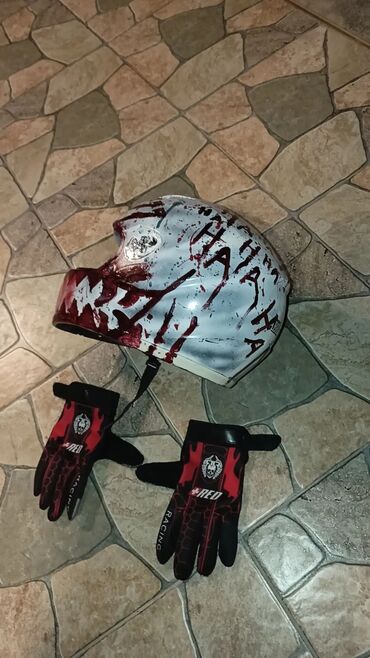 - Şəklin birində uyğun dizaynda tam üzlüq kaska görünür (qrafikalı)