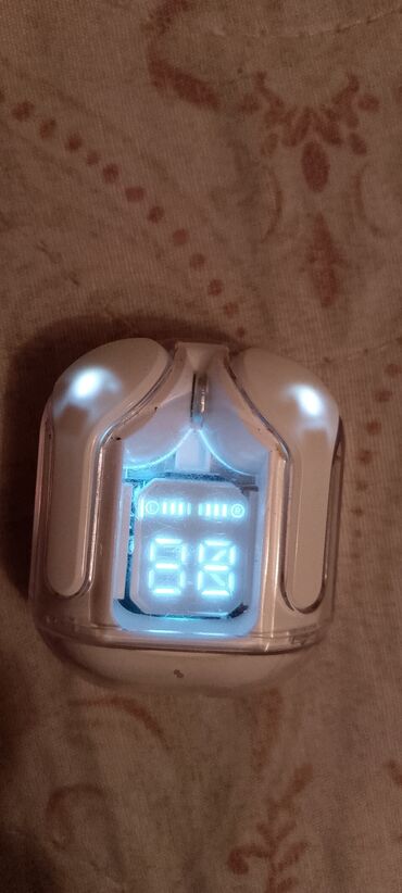 - Şarj qutusu: şəffaf üst qapaqlı, kompakt korpus; qulaqlığı maqnit yuvasında saxlayır