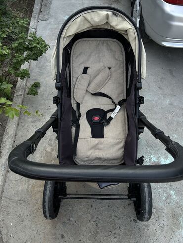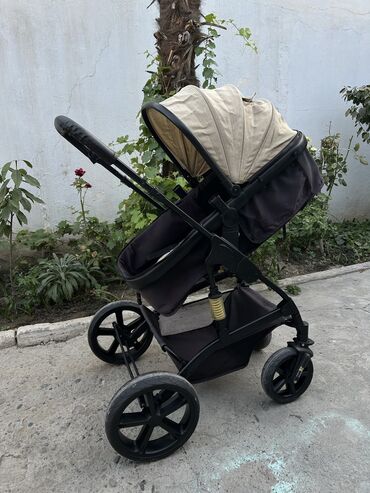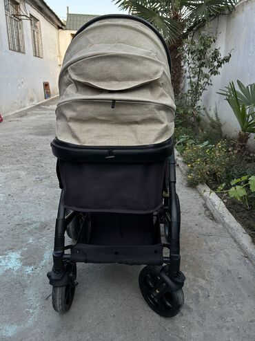 Uşaq arabası – çoxfunksiyalı beşik tipli model - Rəng: boz (qızılı/şampan çərçivə akssentləri) - Tip: beşik-liyolka modullu, körpə üçün tam yatan vəziyyət - Tənzimlənən kapüşon və ön qoruyucu tuta...