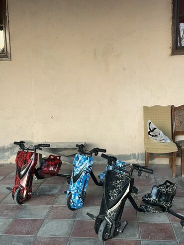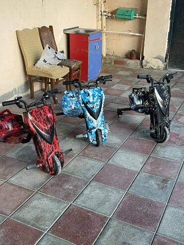 - Model: 3 təkərli elektrik drift skuter (ön tərəfdə bir iri təkər, arxada iki kiçik təkər – sürüş və drift üçün)