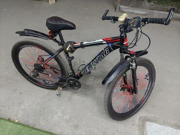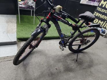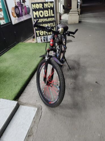 - Təkərlər: 26" x 2.1" dişli off-road şinlər, qırmızı şpiller