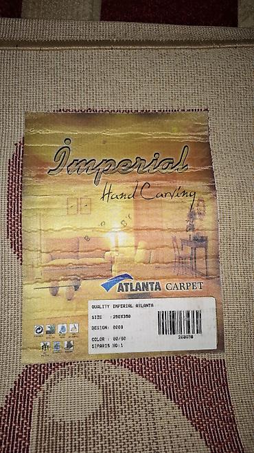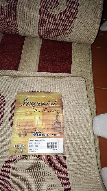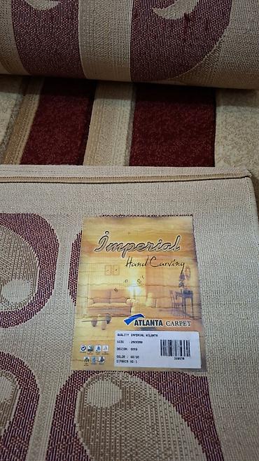 Sonrakı şəkillərə baxanda təzə olması tükünün keyfiyyəti aydın şəkildə görünür. İmperial xalıdan alınıb 400 aznə. qiyməti indi də düşməyib. şəkil üçün sərilib. keyfiyyətli qalın . Xalçadan anlayışı olan baxan kimi anlayar. sintetik xalça deyil. krem və bardovuy tonlarda, dekorativ naxışlı.