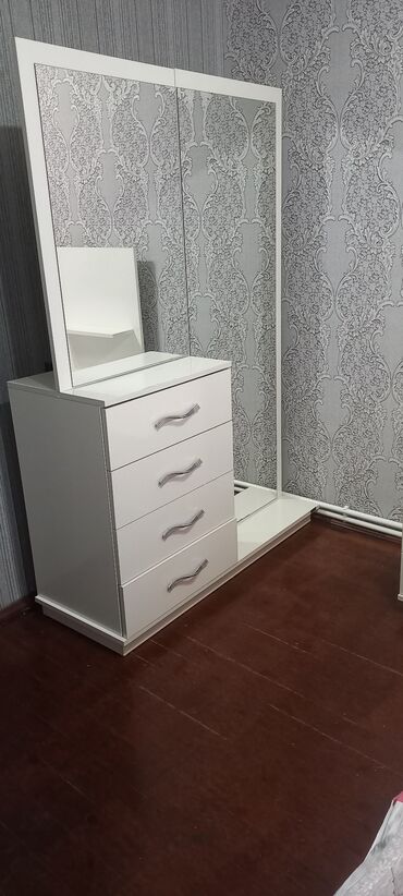 1) Komod – 4 çekmecəli, yuxarı hissədə geniş güzgü paneli və kiçik polkası var.