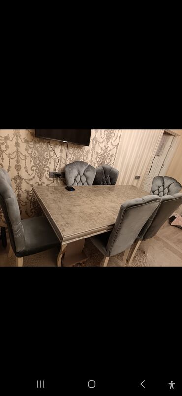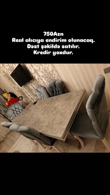 - Dəst: düzbucaqlı yemək masası + 6 ədəd stul