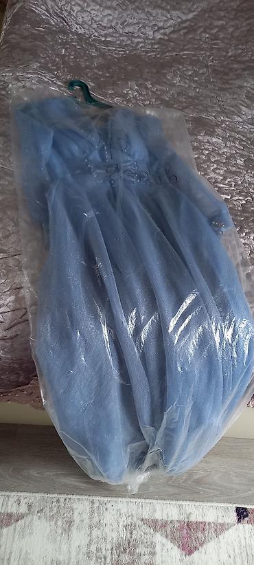 Mavi rəngdə zərif ziyafət/nişan/libas nisanda geyinilib bir defe -