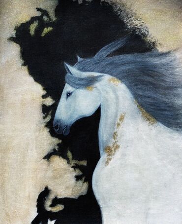 At ve ağac ketan işleme akril,yagli boya ve xusisi pariltili tozla ölçü 32x27 -34x25