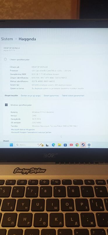 - Sistem: 64-bit Windows 11 Pro Education, versiya 23H2