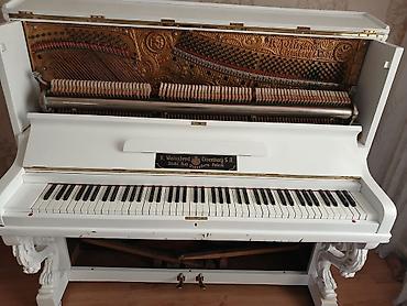 Ölçülər təxmini: tam ölçülü upright piano hündürlüyü. Dizaynı və metall lövhədəki markalanmalar fotolarda aydın görünür.