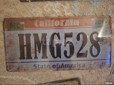 3) California nömrəsi – “HMG528” yazılı, “California” başlığı və ABŞ bayrağı elementləri ilə.
