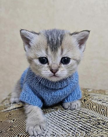 Gümüş rəng çalarlarında, iri xəzli, mavi-yaşıl gözlü balaca Scottish tipli (bəziləri qıvrıq/qulaqları yatan) pişik balaları. Xüsusiyyətlər: - Rəng: gümüş shaded/smoke, bədəni açıq krem-boz, quyruq...