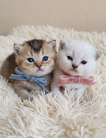 Ağ rəngli balaca pişik balaları - Cins xüsusiyyətləri: yumru sifət, qısa və sıx yun, iri ifadəli gözlər; bəzi balalarda qatlanmış qulaqlar. - Rəng: süddən-ağ, bəzi boz-krem kölgələr və pəncələrdə ...
