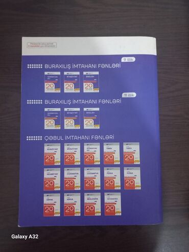 - Arxa üzdə digər fənlər üzrə (9 illik, 11 illik buraxılış və qəbul imtahanları) uyğun “20 variant” seriyası barədə məlumat