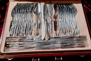 Qaşıq, çəngəl, bıçaq dəsti. Alman malı. 16 ədəd dəst. Yeni, qutuda.