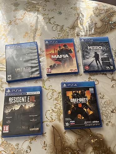 Hər biri rəsmi PS4 plastik qutusunda, disk və örtük/kağız əlavələrlə. Жанrlar: aksiyon, şuter, qorxu və açıq dünya. Yaş məhdudiyyətləri qabıqlarda 18+ və M kimi göstərilib. Multiplayer/xüsusi rejimlər barədə məlumatlar orijinal örtüklərdə mövcuddur.