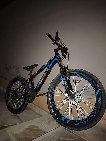 SAFT m800 dağ velosipedi ciddi alıcıya endirim olunacaq. - Rəng: qara-mavi dizayn - Çərçivə: Yüngül alüminium tipli çərçivə - Amortizasiya: ön amortizatorlu vila - Təkərlər: 24" ölçülü, enli əkər...
