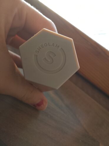 - Qablaşdırma: Altıbucaqlı formalı şüşə flakon, mat təsirli, üstündə “SHEGLAM” loqosu. Qapaq altın tonlu halqa detallı.