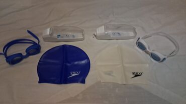 - 2 ədəd Speedo üzgüçülük papağı: biri mavi, biri ağ rəngdə. Səthində Speedo loqosu.