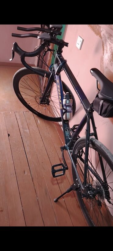 - Sükan: klassik “drop bar” + üstündə aerobar/triathlon barları və dirsək dayaqları – uzun məsafə və yüksək sürət üçün