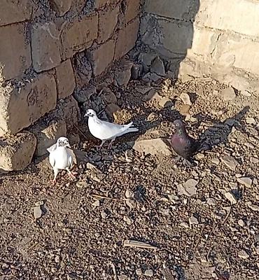 Salam 35 eded goyercindi kom 7 manat.tek tek 10 manat. Təsvir: - Həyətdə saxlanılan, bir qrup ev göyərçini. - Rənglər: ağ, qara, boz, qəhvəyi və ala (qarışıq naxışlı); quyruq və qanadlarda ağ-qar...