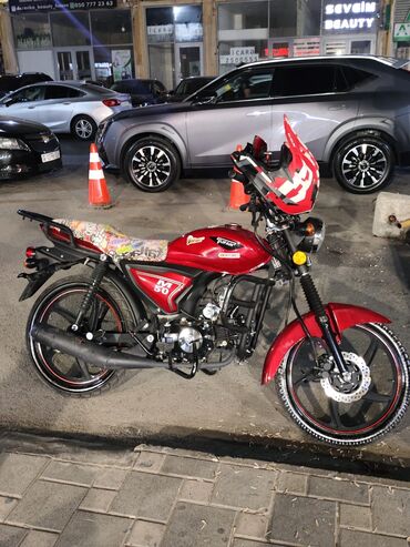 Moped/motosiklet – qırmızı rəng, şəhər və gündəlik sürüş üçün yığcam və qənaətcil model.