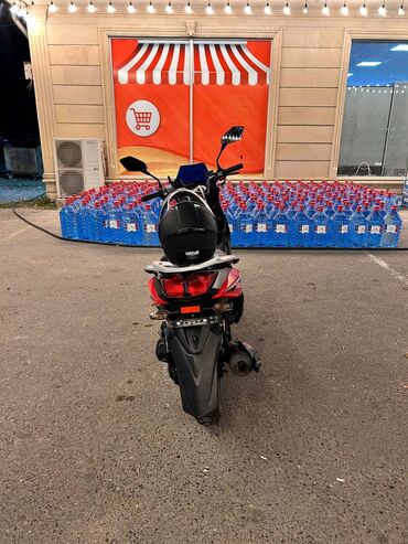 Model: Repsol üslublu şəhər skuter/moped Xüsusiyyətlər: - Rəng: qara-qırmızı ağ aktsentlərlə, idman tipli Repsol stilində body-kit - Ön LED işıqlar və gündüz işıqları, mor tonlu panel işıqlandırma...