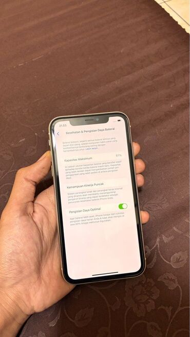 İdealin ideali noqte cizixsiz 85% pil zavod. Deyişeni yoxdur. Məhsul: Apple iPhone 11 (Ağ rəng) - Korpus: Şüşə arxa və alüminium çərçivə, ağ rəng - Ekran: 6.1" Liquid Retina HD (LCD), Face ID ü...