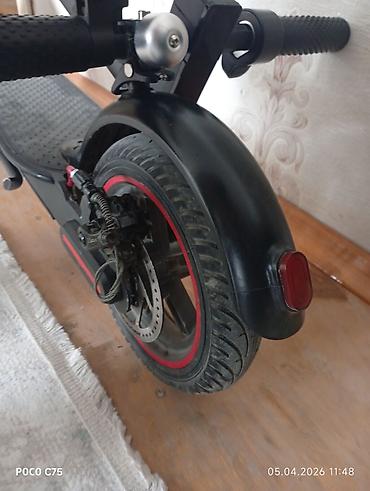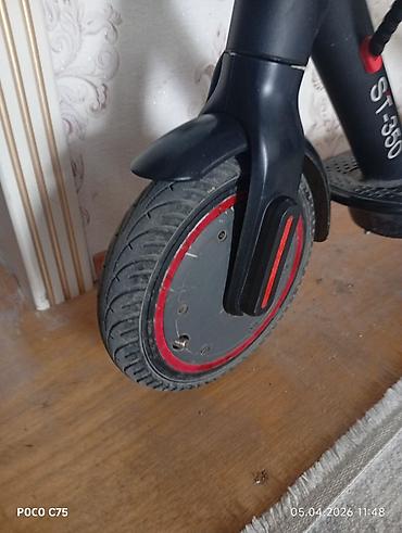 Elektrik skuter – Toba ST-350 - Model: ST-350 (Toba brend işarəsi gövdədə) - Rəng: qara, qırmızı aksentlərlə - Güc: 350W sinifli ön təkər motoru (model adından) - Enerji düyməsi və LED göstərici p...