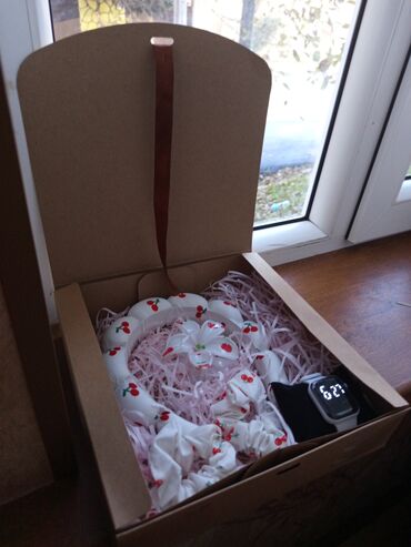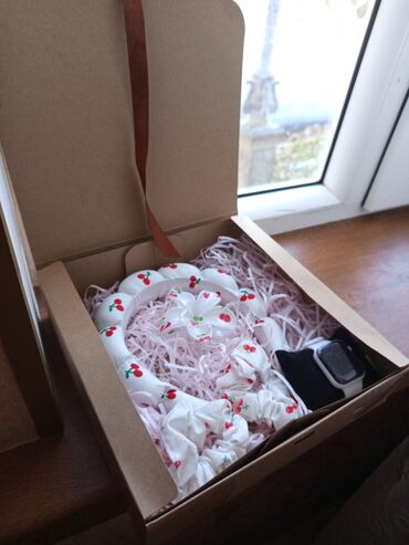- Saç üçün dekorativ bant/kiçik taca-bant (albalı naxışlı, qutuya uyğun)