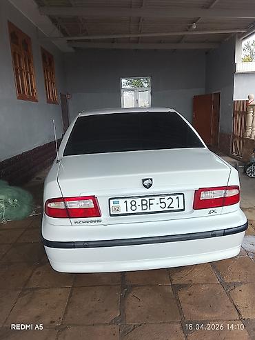 İran Khodro Samand sedan - Kuzov: ağ rəng, 4 qapı, sedandır - Nömrə nişanı: 77-LR-503 (AZ) - Ön fara və duman işıqları, yan qoruyucu moldinqlər - Yüngül lehimli disklər - Salon: qəhvəyi parçadan o...