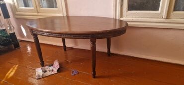• Oval kofe/çay masası – taxta üstlük, oyma dekorativ kənarlar, dörd ədəd klassik dizaynlı ayaq.