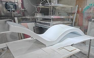 Hovuz üçün uzanma kreslosu – monolit, dalğavari dizaynlı, parlaq ağ səth.