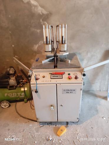 Qeyd: Şəkillərdə göründüyü kimi avadanlıqlar birlikdə və ya ayrıca sex istifadəsinə hazır komplekt kimi təqdim olunur. Model adları üzərində: NIKMAK SK-01 paneli olan künc emal qurğusu, FORTE air compressor, Özçelik profil işləmə maşını, əl frezi.