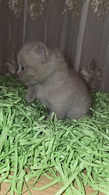 Boz rəngli Britan tipli balaca pişiklər - Rəng: bərk boz (blue/boz) - Xüsusiyyətlər: yumşaq qısa tük, yumru üz, iri mavi gözlər, güclü, yığcam bədən quruluşu - Xarakter: sakit və mehriban, ev şəra...