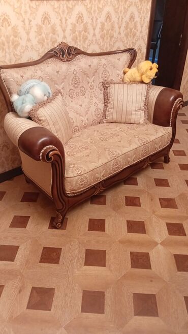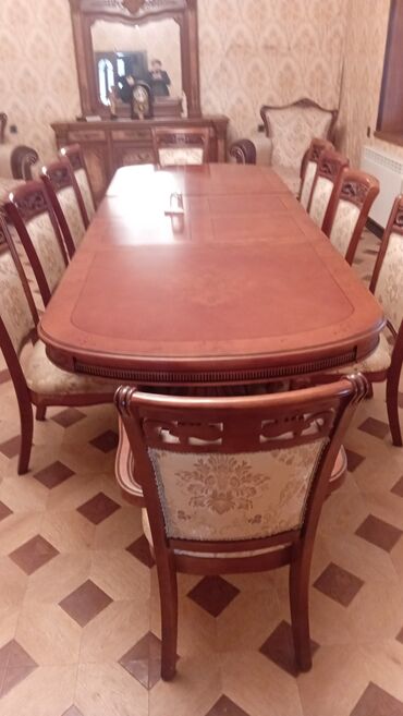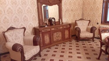 Ağac fakturalı, tünd qəhvəyi rəngdə iri divar mebeli dəsti. Xüsusiyyətlər: - Bölməli vitrin hissələri: şüşəli qapılar, rəflər – qab-qaşıq, kitab və dekor üçün əlverişli - Bağlanan dolab hissələri:...