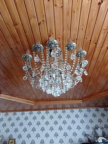 - Şaxələnmiş qollar və çoxsaylı asqılar: şəffaf kristal/prizmatik daşlar, damla və kürə formasında