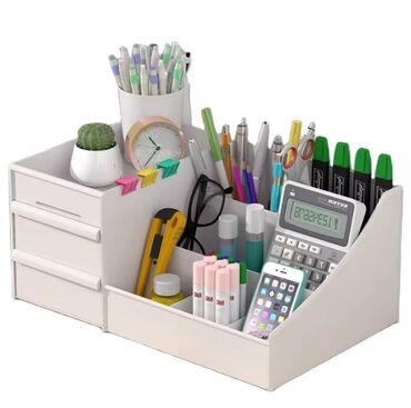 Bir təşkilatçı ilə həm kargüzarlıq ləvazimatlarını, həm də kosmetika və aksesuarları səliqəli şəkildə saxlamaq mümkündür.