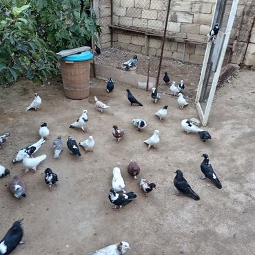 - Həyətdə saxlanılan müxtəlif rəng və naxışlarda dekorativ/ucuş göyərçinləri.