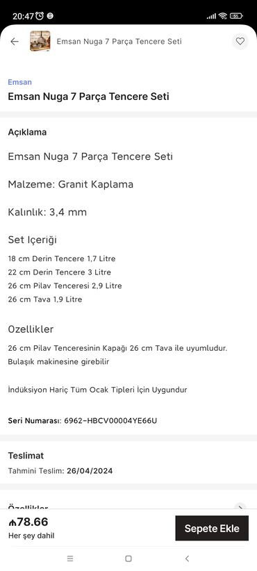 Emsan qazan desti 18.20.26.26sm ölçüdə çox keyfiyyətli estetik. 135m. Catdrlma yalnız qarayev metro